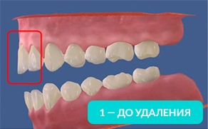 Массовое смещение и выдвижение оставшихся зубов приводит к нарушению прикуса. На 4-ой картинке видно, что положение центральных зубов достаточно ощутимо изменилось, при этом удаленные зубы были расположены далеко от них.